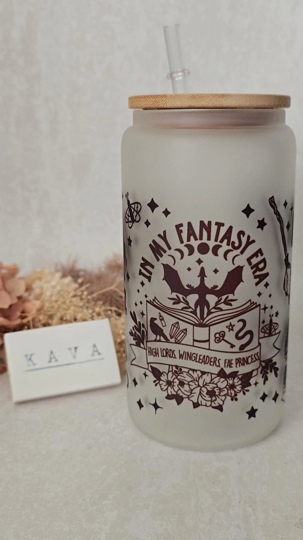 Our Tumbler/Beer Can Glass has been decorated with high quality prints. They include an Acrylic Straw & Bamboo Lid.